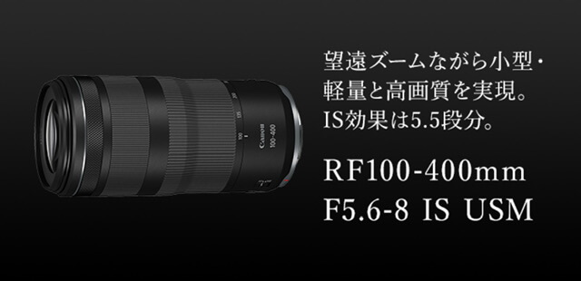 RF 100-400mm 写真は公式サイトよりで、最初は比較的コストも抑えられる人気のレンズRF 100-400を調べ始めたんだけど、あまりにコスパに優れた人気商品だけに、とにかくどこにも在庫がない。取り寄せすれば2ヶ月くらいで手に入れられるみたいではあるのだけど。