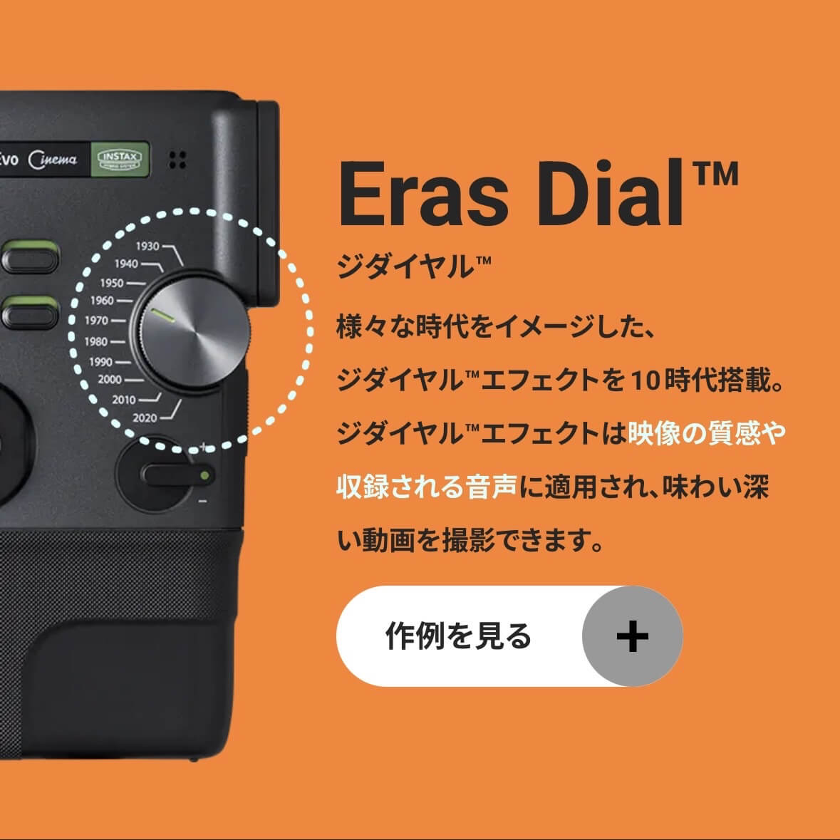 FUJIFILM INSTAX mini Evo Cinema 写真は公式サイトよりいちおう調べてみると、静止画でもジダイヤルのエフェクトを使って撮れるみたいで、だったら使って試してみる価値はあるだろうと。そういう軽い気持ちでトライできる絶妙な価格帯であることも、ついつい大人の趣味の散財につながった。上手いなあ、FUJIFILMのマーケティング…。