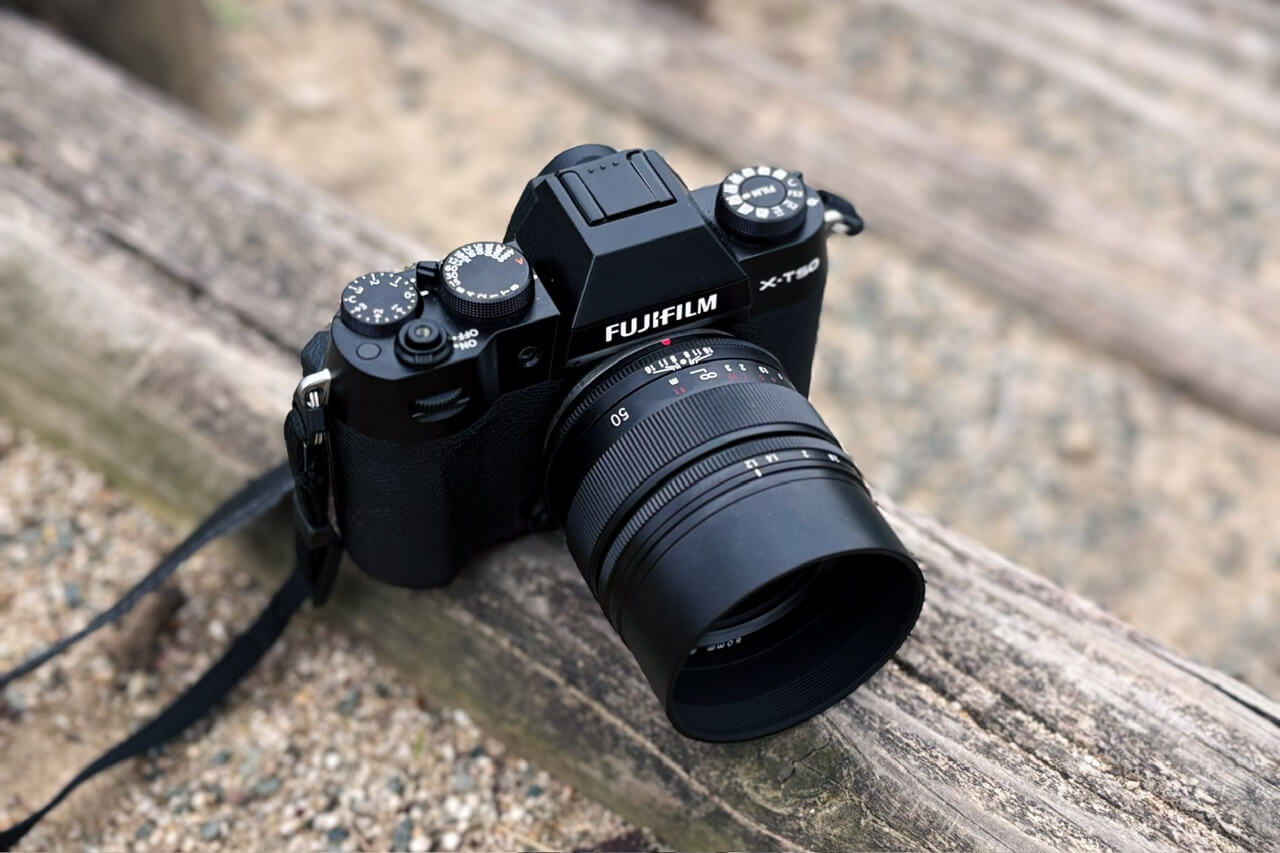装着してみたフォルムは、想像通りX-T5が最もしっくりくると思った。やはり、ペンタ部のある一眼レフ的造形で少し大きめのボディデザインだから、f1.2 Noktonシリーズの中でもちょっと大きめの中望遠レンズ 50mmでも見た目のバランス的におさまりがいい。