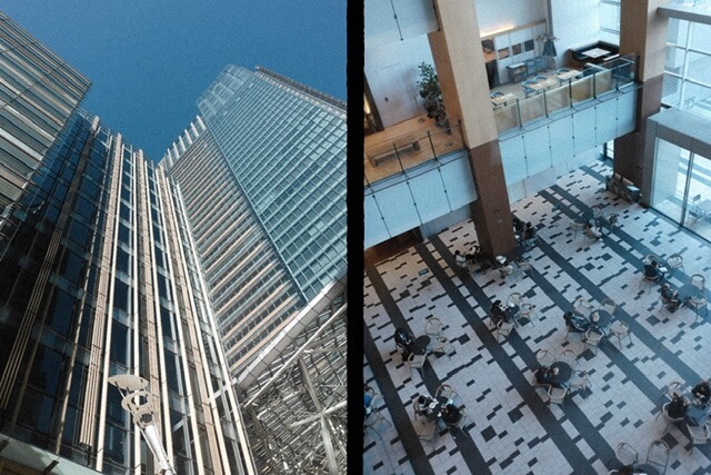 FUJIFILM X half都市のスナップでは青みが入ると建物のアンダーな部分もクールな影になるんで、青みという意味ではREALA ACEで撮ろうかなと思ったんだけど、モダンな風景はネガベースのREALA ASEよりもポジベースのクラシッククロームのほうが締まりがあっていいかもしれないね。