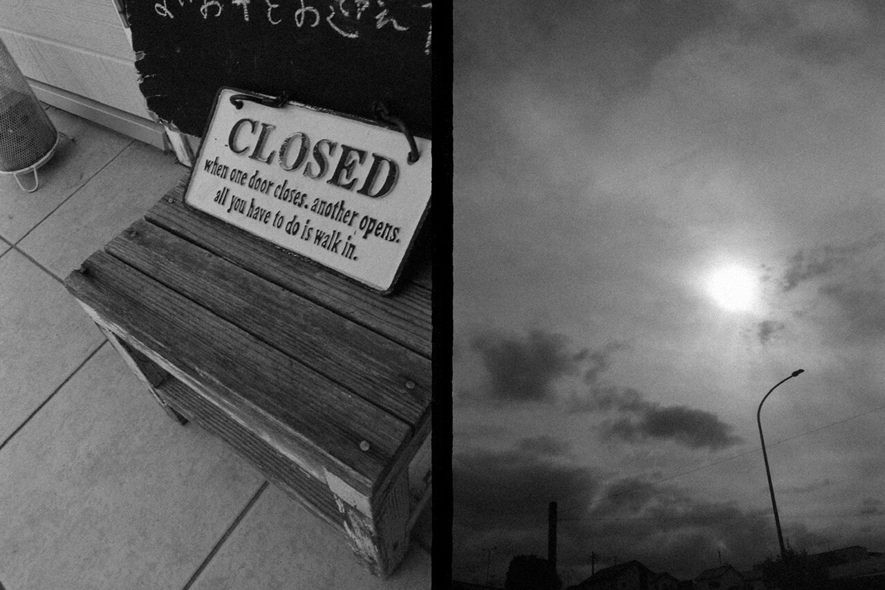FUJIFILM X half コンタクトシート(ボカしてる)数十秒で現像が終わると、それを一枚ずつ楽しんでもいいし、ハーフサイズカメラらしく2in1の組写真にして楽しんでもいい。ここで毎回気づくのだけど、背面モニターを見ずに、あのパララックスありありの素通しファインダーをのぞいて撮った写真のほうが味があるというか、リアリティがあると感じるのである。